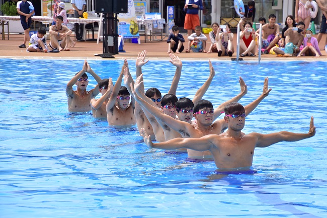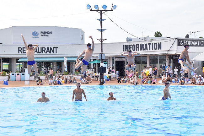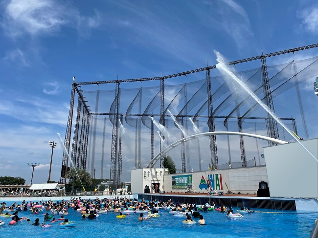 よみうりランドのプールWAIは、毎日どこかで爽快なイベントを開催しています。波のプールで開催中の「ラジオ the WAVE」では、ステージからの放水が3年ぶりに復活。毎年恒例のよみうりランドスタッフによるシンクロショーは7月19日(火)より曜日限定で開催します。