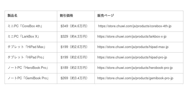 特設ページ:https://promotion.chuwi.com/chuwi-merry-christmas-2022/jp/