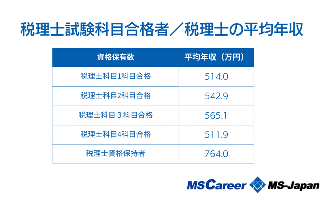 MS-Japanでは、税理士試験合格科目数/資格保持状況別の平均年収について調査を実施しました。