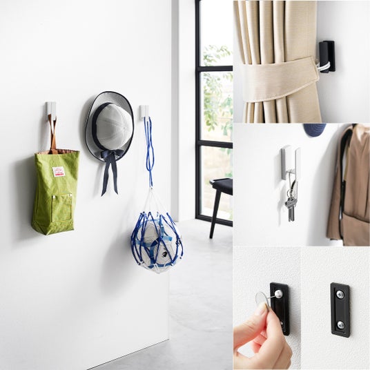 石こうボードピンで取り付けでき、マルチに使えるウォールフック。