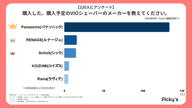 「Picky’s」は、インターネットショッピングにおいて、購入前に試せない・選ぶべきものがわからないという課題の解決を目標に、あらゆる商品のおすすめランキングや検証レビューを紹介するサイトです。このたびPicky’s(https://rentry.jp/)では、夏需要に先駆けて、VIOシェーバーについてインターネット上でアンケート調査を行いましたので発表いたします。