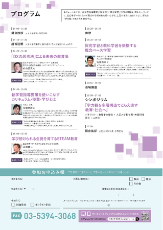 したがって、今回のフォーラムでは【『あらためてわかる!!新学習指導要領と教育DXの本質』―「学力観」のトランスフォーメーション】と題して、「新学習指導要領」「教育DX」「探究学習」「STEAM教育」等をキーワードに、産官学が一体となって現状の情報共有を行いながら、上記の本質に迫るとともに、新たな「学力観」のあり方を模索します。