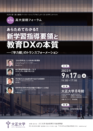 大正大学(学長:高橋秀裕、所在地:東京都豊島区)は、2022年9月17日(土)に第7回目となる「高大接続フォーラム」を開催します。
