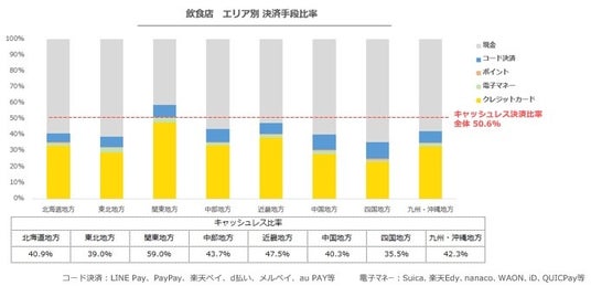 すべての地域で、キャッシュレス比率は35%を超えている。