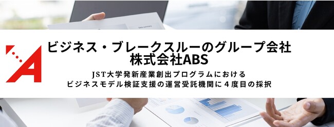 生涯学習を推進し、あらゆる年齢層に教育を提供する株式会社ビジネス・ブレークスルー(所在地:東京都千代田区、代表取締役:柴田巌、以下BBT)のグループ会社である株式会社ABS(所在地:東京都千代田区、代表取締役社長:伊藤泰史、以下、ABS)は、国立研究開発法人科学技術振興機構(JST)の大学発新産業創出プログラム(START)の一環であるプロジェクト推進型ビジネスモデル検証支援の2023年度運営受託機関として採択されたことをお知らせいたします。なお、ABSが同事業に採択されたのは、4度目(過去の採択年度は2019年度、2021年度、2022年度)となります。