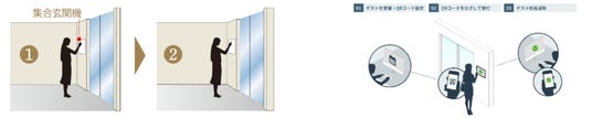 EVホール入口とEV内にICカードリーダーを設置し、大切な情報や資産を守るダブルセキュリティシステムを構築。来訪予定のゲストは事前に配信したQRコードで入館可能な無人型の受付クラウドシステム「workhub Reception」を導入しています。