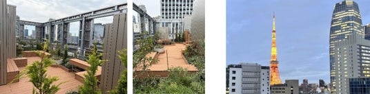 東京タワーを間近に望むテナント専用のルーフテラスを屋上に設置。豊かな緑に囲まれたベンチは働く人のリフレッシュやコミュニケーションをサポート。共用Wi-FiとOAコンセントを備え、ワークスペースとしても活用できます。