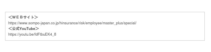 そのような背景から、損保ジャパンは中小企業向けの主力商品であるビジネスマスター・プラスにおいて、従業員が育児休業を取得した場合に企業が負担する諸費用を補償する特約を開発しました。また、育児休業だけでなく、役員・従業員本人または配偶者の出産による休業、親族の介護に伴う休業、疾病の療養のための休業も対象とし「役員・従業員の子育てや介護、療養を応援したい」という中小企業を支援し、改正育児・介護休業法への対応および人手不足の課題解決に貢献していきます。