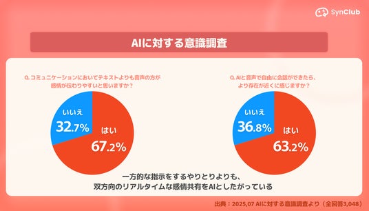 こうした流れの中でSynClubが実施した今回の調査では、「テキストだけでなく音声でのやりとりを求める声が増えてきている」というユーザーのニーズが浮かび上がりました。
