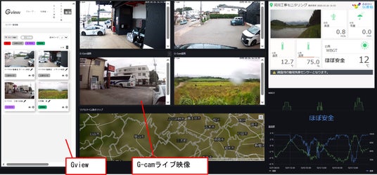- リアルタイム降水量、風速、気温などの環境データと映像を同時表示
