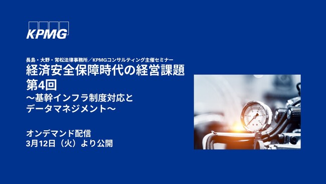 本セミナーでは、このような情勢を踏まえて、KPMGのプロフェッショナルと長島・大野・常松法律事務所の経験豊富な弁護士が、ビジネスやリーガルの視点から、全5回にわたり、課題と対応要領について解説します。