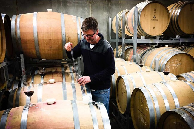 2008年「ヤライエリング」を後にした彼は、自分のこれまでの経験を全て表現できるワインを造ろうと決意してピンパネル ヴィンヤーズの醸造長に就任しました。ピンパネルヴィンヤーズのオーナーであるマーク氏と一緒に、土壌を作るところからワイナリーの歴史はスタートしています。彼らは、フランス ヴォーヌ・ロマネ村に出向き、土壌を研究しつくしました。土壌のpH値などを徹底的に調べ、自社畑の土壌にほぼ同じ数値を再現しています。それだけでなく、約250トンの石灰岩をフランスから取り寄せ、自社畑に敷き詰めています。こうしてフランス ヴォーヌ・ロマネ村に限りなく近い土壌を作り上げました。栽培から醸造までを徹底し、地球の反対側・オーストラリアで、ヴォーヌ・ロマネ村を感じる果実、そしてワインを造っています。