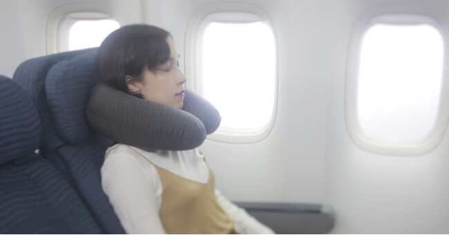 ひと息で膨らみ、小さくたためるネックピロー。口を開いて少し離れたところから息を吹き込むと、簡単に膨らみます。 あとは 口を折り返し、フックで留めるだけでセットが完了。たたむと片手サイズで軽量 のため、気軽に持ち運べます。寝心地の良さにもこだわり、首を包み込み後頭部を支えるかたちにしました。カバーは取り外して洗濯が可能です。