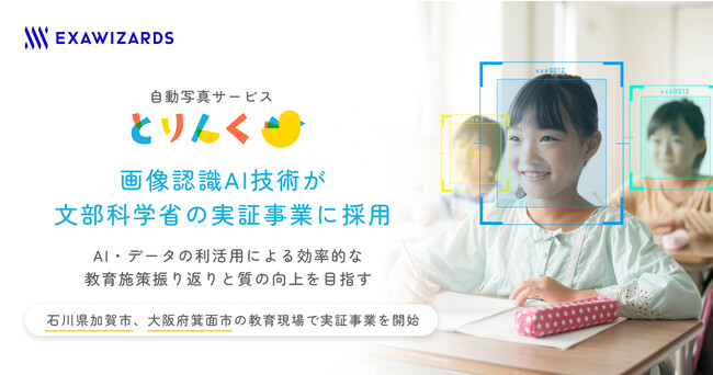 株式会社エクサウィザーズは、子会社の株式会社VisionWiz(東京都港区、代表取締役:池知 慎一、以下、VisionWiz)が提供する自動写真サービス「とりんく」の画像認識AI技術を活用した取組みが、文部科学省の実証事業として採択されたことをお知らせします。