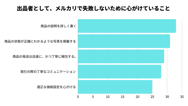 次は、出品者として「メルカリで失敗しないために心がけていること」についての調査結果を見ていきましょう。