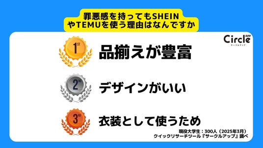 ではなぜこれだけ多くの学生が問題を認知し、罪悪感を持ちながらもSHEINやTemuを利用するのでしょうか。