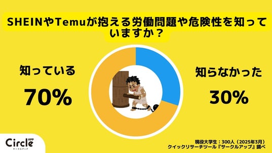 SHEINやTemuが抱える問題について尋ねたところ7割が問題を認識していることがわかりました。
