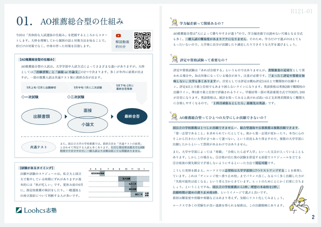 Loohcs株式会社(代表取締役 :嶺井 祐輝 本社所在地: 渋谷区桜丘町)は、同社運営の総合型選抜・AO推薦入試専門の学習塾「ルークス志塾」において、期間限定入塾者特典「教材無料プレゼント」キャンペーンを実施致します。