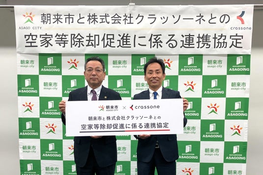 解体工事DXプラットフォーム「クラッソーネ」を運営する株式会社クラッソーネ(愛知県名古屋市、代表取締役CEO:川口 哲平、以下「当社」)は、兵庫県朝来市(以下、「朝来市」)と「空家等除却促進に係る連携協定」を締結いたしました。昨今、全国的にも社会課題となっている空き家問題への対策として、朝来市の空き家除却を推進することで、安全安心なまちづくりを目指します。また本締結で、当社の自治体連携の実績は118自治体(行政運営の団体含む)、兵庫県内では8自治体となり、県内人口カバー率は45.8%になりました(※1)。
