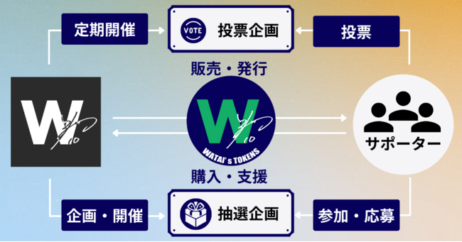 渡井理己トークンはプロジェクトへの応援の「しるし」や「証」の役割を果たし、また単に支援の証になるだけでなく、保有することでプロジェクト発の投票企画への参加や、トークン保有者限定の特典への応募ができるなど、新しい体験ができるデジタル上のアイテムです。