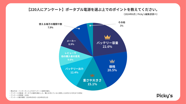 「Picky’s」は、インターネットショッピングにおいて、購入前に試せない・選ぶべきものがわからないという課題の解決を目標に、あらゆる商品のおすすめランキングや検証レビューを紹介するサイトです。このたびPicky’s(https://rentry.jp/)では、夏需要に先駆けて、ポータブル電源についてインターネット上でアンケート調査を行いましたので発表いたします。