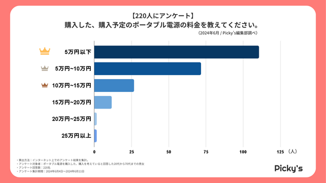 半分の方が5万円以下のポータブル電源を選んでいることが分かります。