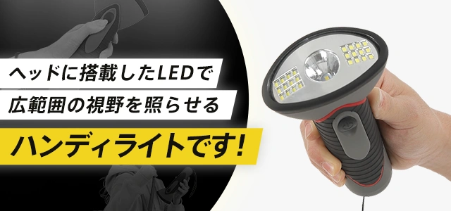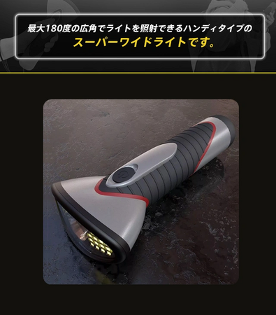 最大180度の広角でライトを照射できるハンディタイプのスーパーワイドライト