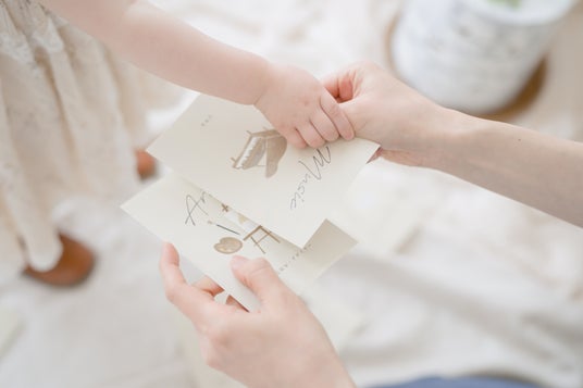 また、1歳の誕生日の行事として親しまれている「選び取り」では、コフレオリジナルの「選び取りカード」をご用意しており、選んだカードと手足型を一緒にディスプレイできる台紙プレゼントが人気の撮影メニューの一つです。