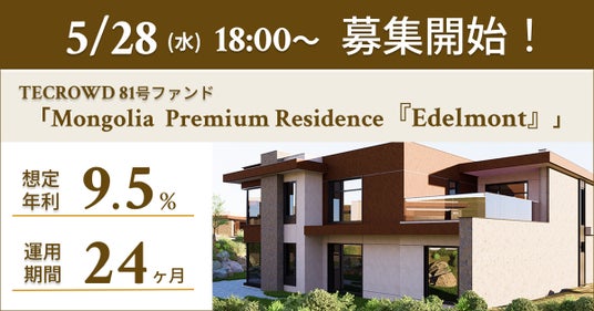 2025年5月28日(水)18時より81号ファンド 「Mongolia Premium Residence 『Edelmont』」の募集を開始いたします。