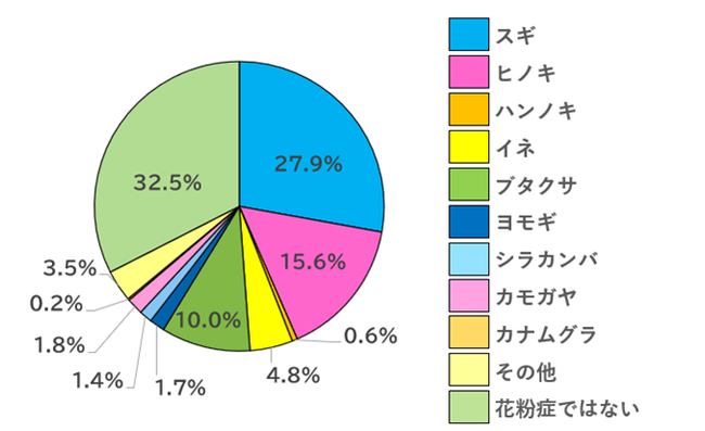 「花粉症」=「スギ」とイメージする方も多いと思いますが、やはり「スギ」と回答された方が一番多く、その次に「ヒノキ」「ブタクサ」と続きました。