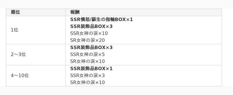 イベント開催期間中、「星の響き:アースラ(タイムアタック)」に挑戦し、ボスモンスターの討伐に成功した方のうち、クリアタイムが早い順に、以下のランキング報酬をプレゼントします。