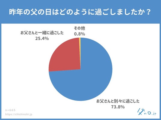 - 実父と一緒に過ごす人は25.1%、義父とはわずか6%。9割以上が「離れて過ごす父の日」。