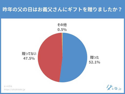 「昨年の父の日に義父へプレゼントを贈った」と回答した人は52.1%にのぼり、実父へのギフト率(55.2%)とほぼ同じ水準であることが明らかになりました。