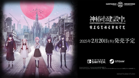 KAMITSUBAKI STUDIOは、SFダークファンタジー・テキストアドベンチャーゲーム「神椿市建設中。REGENERATE」を、Nintendo Switch / Steamにて、2025年2月20日(木)に発売いたします。上位特装版、特装版、通常版、ダウンロード版の4形態の販売で、2024年9月26日(木)より、各取扱い店舗にて予約受付を開始いたします。