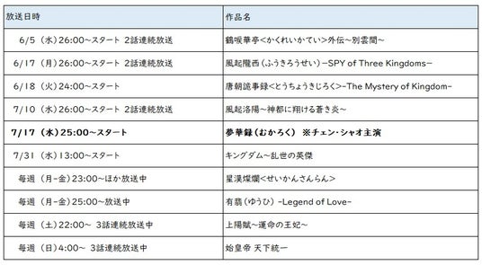 番組詳細ページ https://www.ch-ginga.jp/detail/yunxiangden/