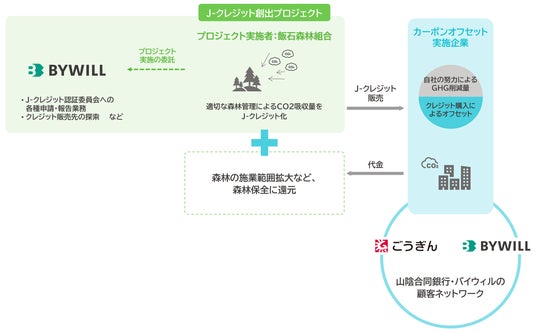 本協定をもとに、バイウィルは飯石森林組合が管理する森林からのJ-クレジット創出について申請手続きを受託・代行し、販売先については山陰合同銀行と協力して探索します。