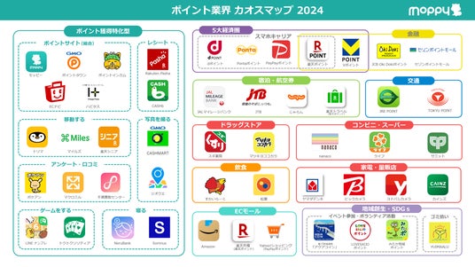 ポイントサイト「モッピー」を運営する株式会社セレス(本社:東京都渋谷区、代表取締役社長:都木 聡、証券コード:3696、以下セレス)は、近年盛り上がりをみせるポイントを貯めて使う活動(以下、ポイ活)において、日常で貯められるポイントを分類した「ポイント業界 カオスマップ 2024」を公開いたしました。