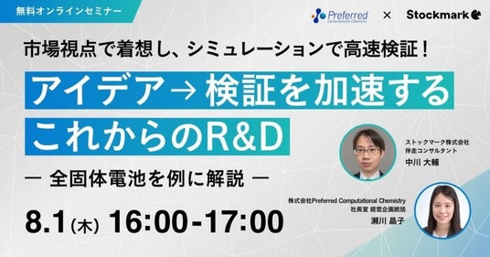 本セミナーでは、最新のAIを活用してより効率的な研究開発を支援する2社より、より有望な研究開発テーマを多く生み出すポイントとともに、その検証スピードを早めるための最新技法について、全固体電池開発を例においてご紹介します。また、2社それぞれの展開するプロダクトを事例を交えながら紹介し、これからのR&Dの在り方についてもお話いたします。