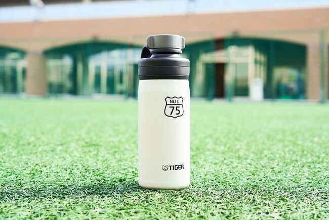 今回タイガー魔法瓶が、日本大学第二高等学校の第75回卒業生に贈呈したボトルは、卒業準備委員の想いが詰まったオリジナルデザインです。これから続くそれぞれの人生を道と捉え、未来に向かってまっすぐ歩む卒業生の背中を後押しし、75回卒業生の道はこれからも続くという想いを込め、上部には学校名の略称をアラビア文字で表記、下部には75回卒業生の「75」という数字をデザインしました。