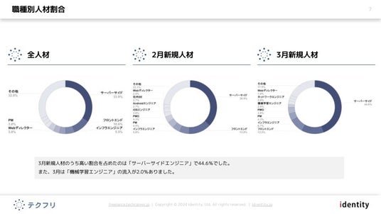 3月新規人材のうち高い割合を占めたのは「サーバーサイドエンジニア」で44.6%でした。
