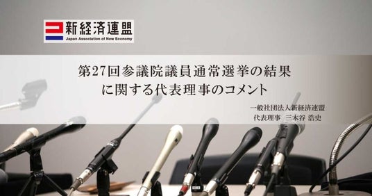 一般社団法人 新経済連盟(所在地:東京都港区、代表理事:三木谷浩史、以下「新経連」)は、第27回参議院議員通常選挙の結果を受けて、代表理事のコメントを下記のとおり発表します。