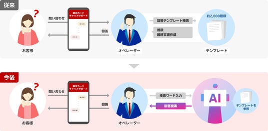 これまで、蓄積された豊富なお問い合わせデータをもとに、約2,000種類の回答テンプレートからオペレーターが最適な回答を検索して対応していましたが、AIが選択してオペレーターに提案することで、回答スピードが向上し、最終的に回答時間が約60秒短縮される見込みです。また、オペレーターはAIが提案したテンプレートに基づいて回答できるため、ハルシネーションリスクを排除し、お客様は正確な回答を得ることができます。