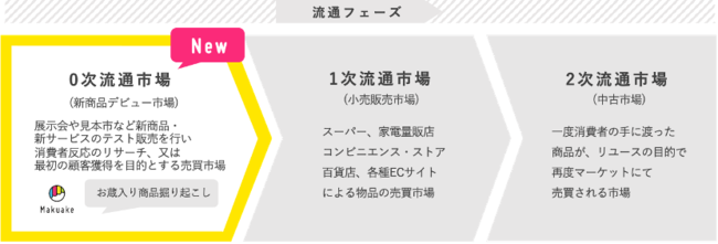 「Makuake」では、商品を大量生産する前に先行予約販売を募ることができるため、新商品やサービスのテストマーケティングの場として活用されることが多く、当社はこの市場を1次流通市場である一般販売の前の市場として「0次流通市場」と名付け、発信してまいりました。