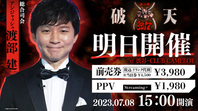 会場にて当日券販売!終演後にMCによる物販実施!7月14日までアーカイブ配信有りのPPVチケットも販売中!破天MICROPHONE公式YouTubeチャンネルでは、前半7試合を無料生配信いたします!