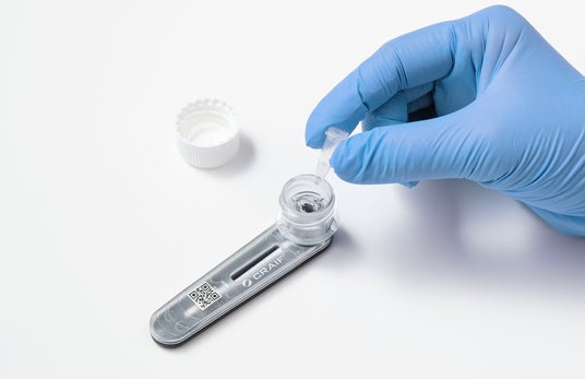 採取しただ液を試薬と混合し、簡易的にPCRでDNAを増幅させた反応液のチューブを準備