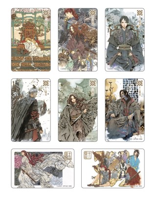 景王の壮麗な絵柄に加えて、山田章博さんによるかわいい「ちびキャラ」がちりばめられた新柄7種です。