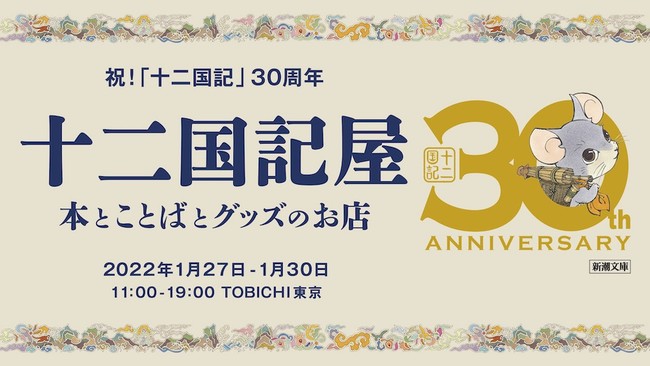 このたび、発売30周年を記念して、TOBICHI東京は主要登場人物らの巨大パネルとともに、「十二国記」の「ことば」を展示します。新作グッズの先行発売もあります。はじめて手に取る方へもゆっくりご案内をさせていただきます。すでに何度も読んでいらっしゃる方、物語について語り合う同好の士を求めていらっしゃる方も遊びに来て下さい。きっと仲間が見つかります。