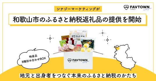 シナジーマーケティング株式会社(所在地:大阪市北区、代表取締役社長 兼 CEO:奥平 博史、以下当社)は、2024年10月17日より、和歌山市のふるさと納税返礼品提供事業者として、地元企業の商品を詰め合わせた返礼品の申し込み受付を開始しました。この返礼品は、当社が和歌山市で運営するファンメディア「FAVTOWN wakayama(ファボタウン ワカヤマ)」でご好評いただいている会員特典「ふるさと便」を、ふるさと納税基準に準拠して提供するものです。本施策を通じ、ふるさと納税の本来の意義である「生まれ育った故郷やお世話になった地域」への貢献を促し、地域とのつながりをさらに深めることを目指します。