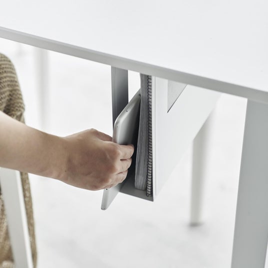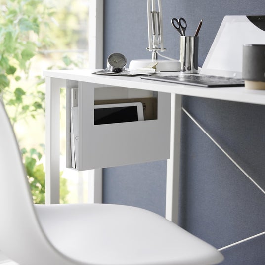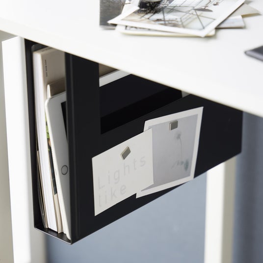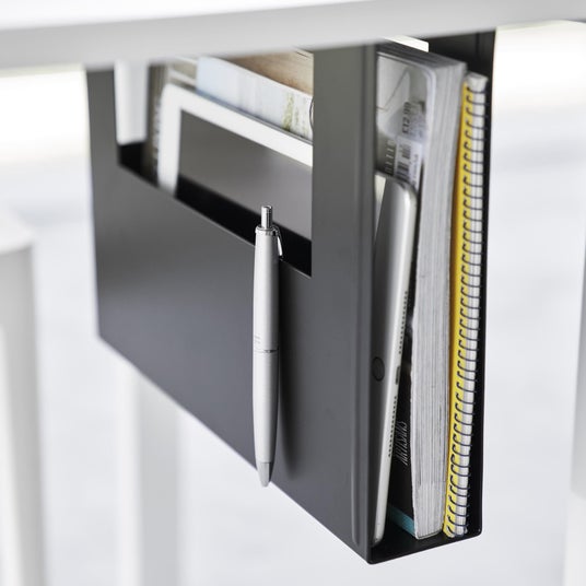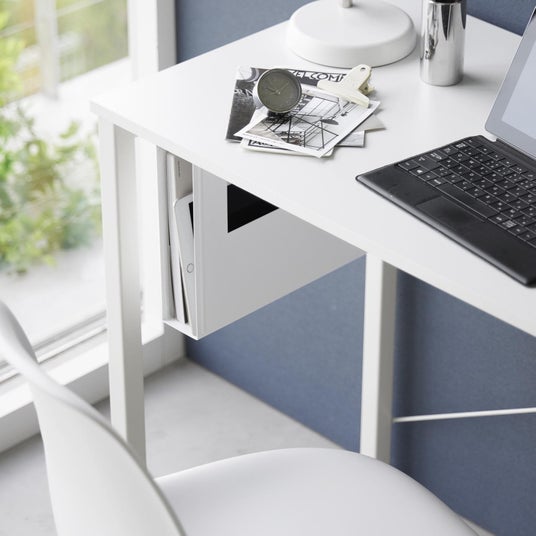 散らかりがちな、A4サイズまでのアイテムをデスク下に収納