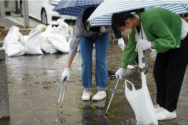 当日はあいにくの雨ではありましたが,本学の学生・教職員および元宇品町内会の皆さま約150人が参加し,傘を差したり合羽を着用したりしながら清掃活動を行いました。今週末に実施されるG7広島サミットで,綺麗な宇品地区に各国の首脳をお招きするべく,宇品地区の海岸沿いや道路沿いの清掃を行い,軽トラック2台分のごみを拾いました。